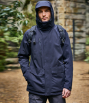 Recycled polyester outer. Part mesh, part recycled polyester taffeta lining. AquaDry membrane with H2OShield DWR finish. Waterproof 10000mm with taped seams. Breathable 20000g and wind resistant. Grown on adjustable hood. Full length zip with outer storm flap, chin guard and inner zip guard. Waterproof right chest zip pocket. Inner map pocket. Two front dual entry pockets. Tear release adjustable cuffs. Drawcord hem. Branding on back of hood. Access for decoration.